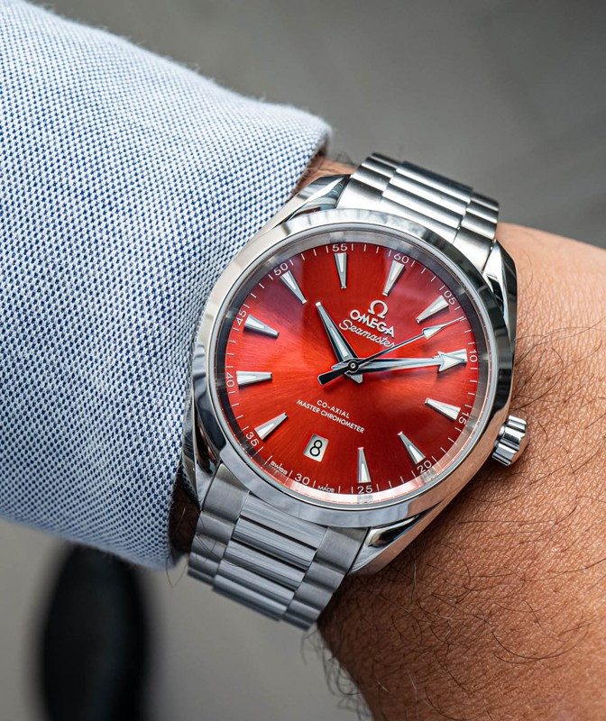Часы Omega Seamaster Aqua Terra Small Seconds представлены в корпусе из нержавеющей стали размером 38 х 19 мм водонепроницаемостью 150 метров. Внутри корпуса находится автоматический механизм, Калибр Omega 8800, обладающий запасом хода 55 часов. На красном циферблате отображаются часы, минуты, секунды, дата. Часы поставляются на браслете из нержавеющей стали.