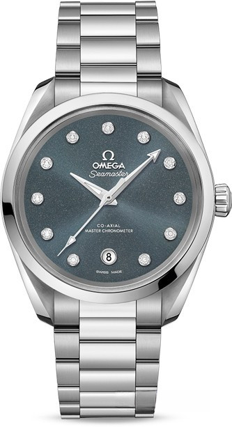 Женские часы Seamaster Aqua Terra в обрамлении из бриллиантов являют собой образец истинной элегантности. Симметричный корпус этой модели диаметром 38 мм выполнен из нержавеющей стали. На мерцающем серо-синем циферблате располагаются окошко указателя даты в положении "6 часов" и 11 бриллиантовых индексов в оправе с родиевым покрытием. Эти часы, оснащенные Калибром Omega Co-Axial Master Chronometer 8800, сертифицированы Швейцарским федеральным институтом метрологии (METAS) в соответствии с высочайшими стандартами часовой индустрии. Они предлагаются с интегрированным браслетом из нержавеющей стали.