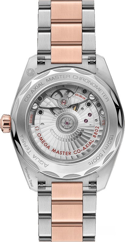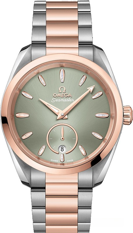 Часы Omega Seamaster Aqua Terra Small Seconds представлены в корпусе из нержавеющей стали и розового золота 18к размером 38 х 19 мм водонепроницаемостью 150 метров. Внутри корпуса находится автоматический механизм, Калибр Omega 8802, обладающий запасом хода 55 часов. На зеленом циферблате отображаются часы, минуты, секунды, дата. Часы поставляются на браслете из нержавеющей стали и розового золота 18к.