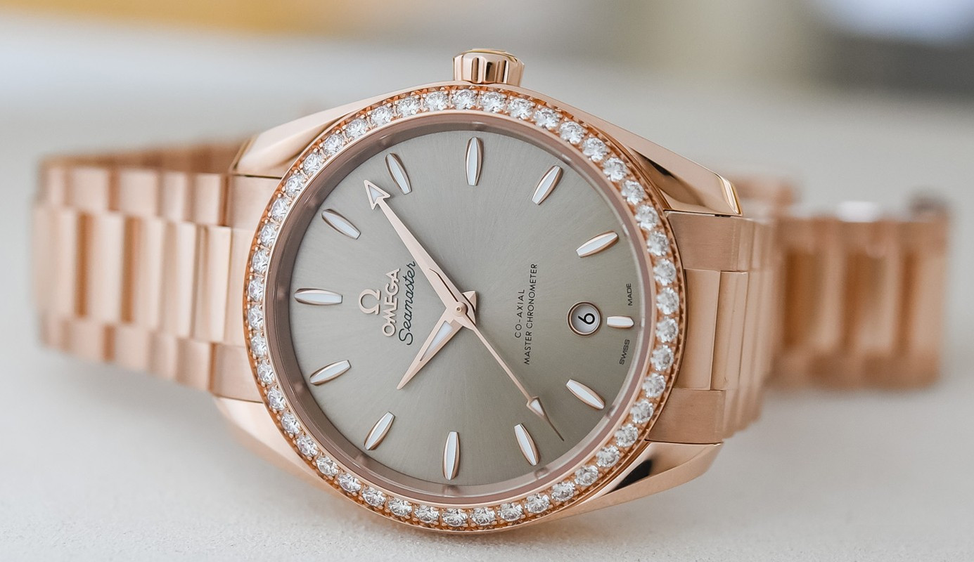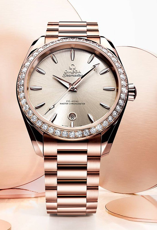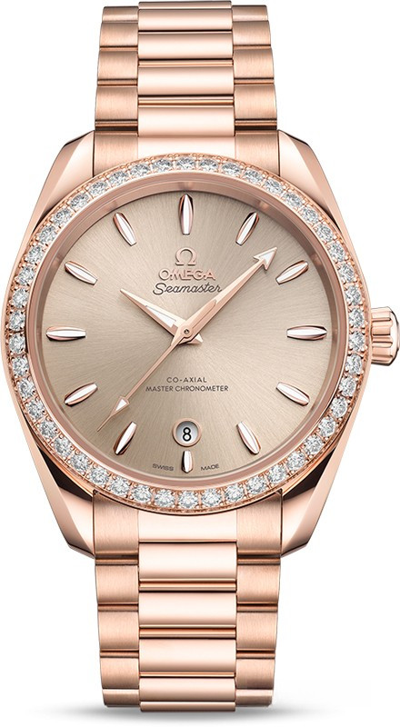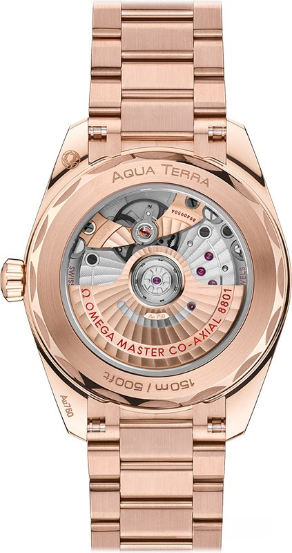 Часы Omega Seamaster Aqua Terra Small Seconds представлены в корпусе из розового золота 18к размером 38 х 19 мм водонепроницаемостью 150 метров. Внутри корпуса находится автоматический механизм, Калибр Omega 8800, обладающий запасом хода 55 часов. На золотистом циферблате отображаются часы, минуты, секунды, дата. Часы поставляются на браслете из розового золота 18к. Безель из белых бриллиантов.