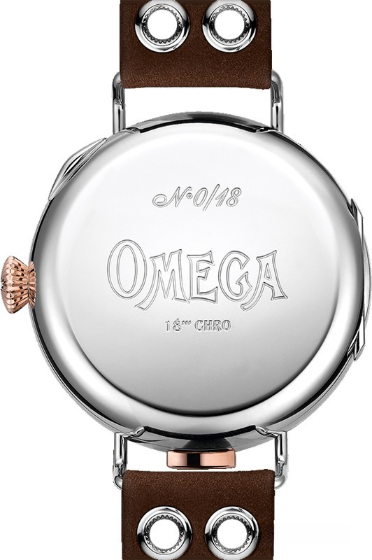 Часы Omega Specialities First Omega Wrist Chronograph представлены в корпусе диаметром 47.5 мм из белого золота 18к водонерпоницаемостью до 30 метров. Внутри корпуса установлен механизм с ручным заводом, Калибр 3018, обладающий запасом хода 40 часов. На белом циферблате отображаются часы, минуты, секунды, накопители хронографа. Часы копмлектуются кожаным ремешком с вставкой из белого золота 18к. Серия ограничена - 18 шт.