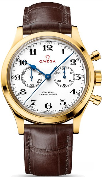 С первого же взгляда этот коаксиальный хронограф ограниченной серии навевает мысли о спортивных достижениях и победах. Выпущенный в количестве всего 188 экземпляров, он воспевает историческую роль OMEGA как официального хронометриста Олимпийских игр. У этой модели стильный часовой корпус из 18-каратного желтого золота имеет матовую заводную головку с полированным рельефным винтажным символом OMEGA. На лакированном белом циферблате винтажный символ OMEGA напечатан красным цветом. В положениях "3 часа" и "9 часов" находятся вспомогательные циферблаты с синеными стальными стрелками. Классический дизайн нашел продолжение в коричневом кожаном ремешке. На задней крышке корпуса имеется специальная олимпийская гравировка. Здесь же выгравирован порядковый номер часов в составе ограниченной серии. Часы приводятся в действие эксклюзивным часовым механизмом OMEGA, калибр 3203, который представляет собой великолепный образец часового мастерства.