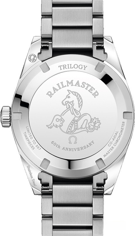 Часы Omega Specialities The 1957 Trilogy представлены в корпусе диаметром 38 мм из нержавеющей стали водонерпоницаемостью до 60 метров. Внутри корпуса установлен автоматический механизм, Калибр 8806, обладающий запасом хода 55 часов. На черном циферблате отображаются часы, минуты, секунды. Часы копмлектуются браслетом из нержавеющей стали. Серия ограничена - 557 шт.