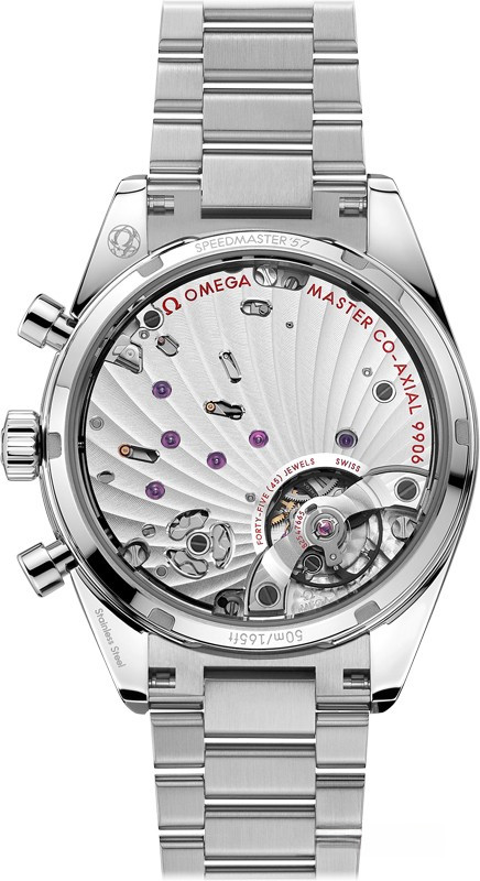 Часы 57 Co-Axial Master Chronometer Chronograph 40.5 mm представлены в корпусе из нержавеющей стали размером 40.5 мм водонепроницаемостью 50 метров. Внутри корпуса установлен автоматический механизм, Калибр 9906, обладающий запасом хода 60 часов. На черном циферблате отображаются часы, минуты, секунды, дата, накопители хронографа, тахиметр. Часы поставляются на браслете из нержавеющей стали.