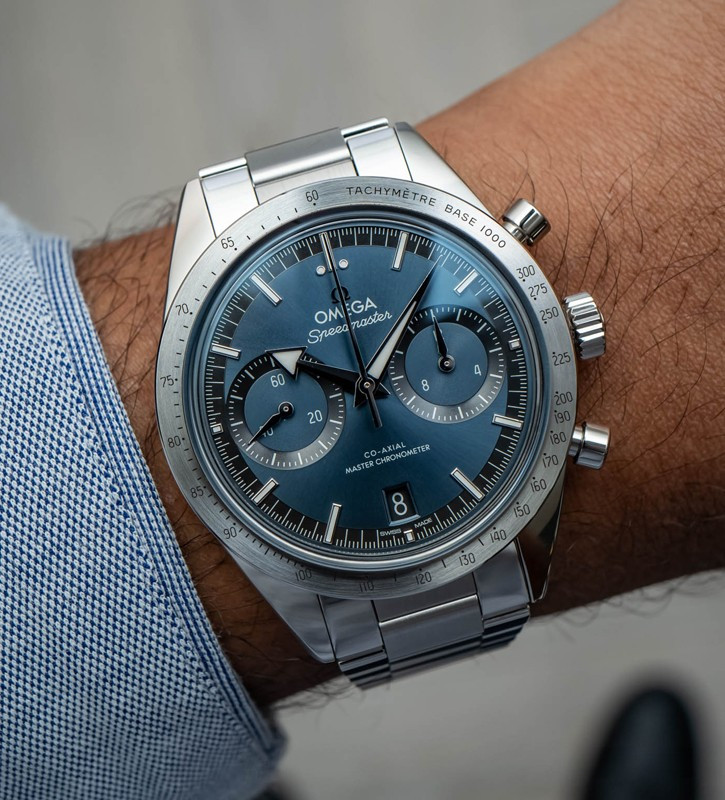 Часы 57 Co-Axial Master Chronometer Chronograph 40.5 mm представлены в корпусе из нержавеющей стали размером 40.5 мм водонепроницаемостью 50 метров. Внутри корпуса установлен автоматический механизм, Калибр 9906, обладающий запасом хода 60 часов. На синем циферблате отображаются часы, минуты, секунды, дата, накопители хронографа, тахиметр. Часы поставляются на браслете из нержавеющей стали.