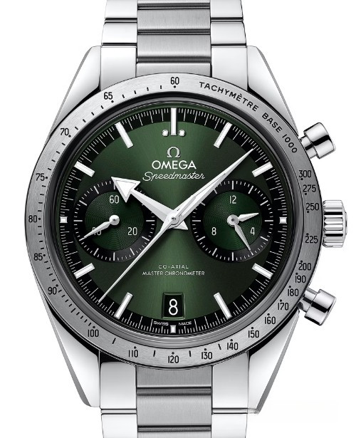 Часы 57 Co-Axial Master Chronometer Chronograph 40.5 mm представлены в корпусе из нержавеющей стали размером 40.5 мм водонепроницаемостью 50 метров. Внутри корпуса установлен автоматический механизм, Калибр 9906, обладающий запасом хода 60 часов. На зеленом циферблате отображаются часы, минуты, секунды, дата, накопители хронографа, тахиметр. Часы поставляются на браслете из нержавеющей стали.
