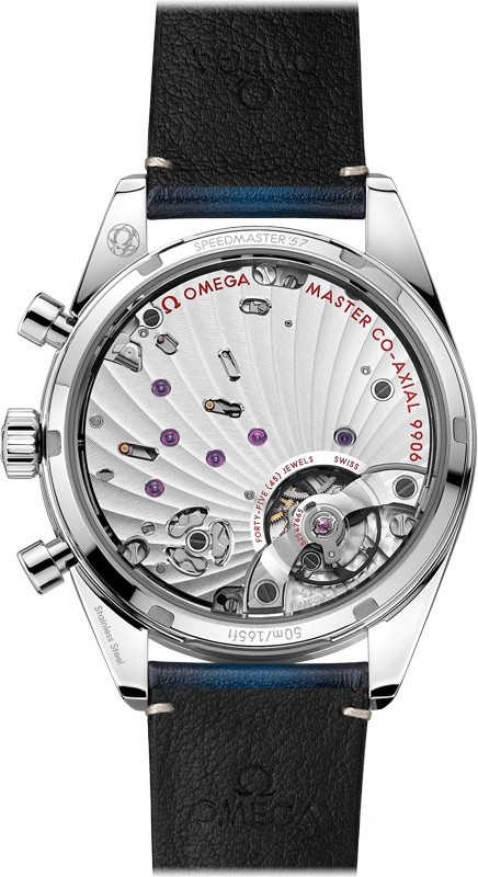Часы 57 Co-Axial Master Chronometer Chronograph 40.5 mm представлены в корпусе из нержавеющей стали размером 40.5 мм водонепроницаемостью 50 метров. Внутри корпуса установлен автоматический механизм, Калибр 9906, обладающий запасом хода 60 часов. На синем циферблате отображаются часы, минуты, секунды, дата, накопители хронографа, тахиметр. Часы поставляются на кожаном ремешке с застежкой из нержавеющей стали.