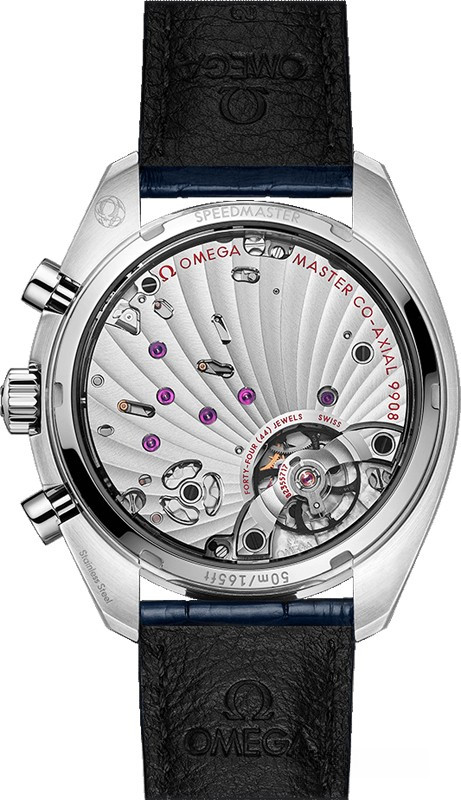 Часы Omega Chronoscope Co-Axial Master Chronometer Chronograph 43 mm представлены в корпусе из нержавеющей стали размером 43 мм водонепроницаемостью 50 метров. Внутри корпуса находится механизм с ручным заводом, Калибр 9908, обладающий запасом хода 60 часов. На серебристом циферблате отображаются часы, минуты, секунды, тахиметр, пульсометр, телеметрическая шкала, время второго часового пояса. Часы поставляются на ремешке из кожи аллигатра с вставкой из нержавеющей стали.