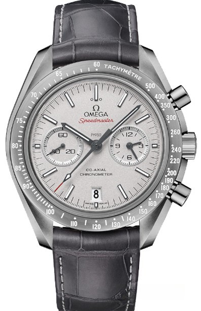Часы OMEGA Speedmaster “Grey Side of the Moon” – инновационная модель в коллекции Speedmaster. Исключительно стильные часы в сером керамическом корпусе с подвергнутым пескоструйной обработке циферблатом из платины 950 пробы, стрелками в стиле Moonwatch, тахиметрической шкалой из белого люминофора Super-LumiNova и керамическим безелем будут сопровождать своего владельца в самых смелых начинаниях. В лучших традициях легендарных предшественников модель Speedmaster "Grey Side of the Moon" имеет совмещенный 60-минутный и 12-часовой счетчик в положении "3 часа" и малую секундную стрелку в положении "9 часов". Коаксиальный часовой механизм OMEGA, калибр 9300, виден сквозь фацетное сапфировое стекло задней крышки. Новшество этой модели – титаново-керамическая раскладывающаяся застежка.