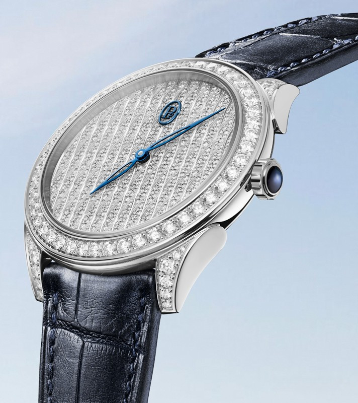 Часы Parmigiani Fleurier Tonda Automatic представлены в корпусе из белого золота 18к размером 36 х 9.95 мм водонепроницаемостью 30 метров. Внутри корпуса установлен автоматический механизм, Калибр PF310, обладающий запасом хода 50 часов. На циферблате с белыми бриллиантами отображаются часы, минуты. Часы комплектуются ремешком из кожи аллигатора с золотой застежкой. Корпус инкрустирован белыми бриллиантами.