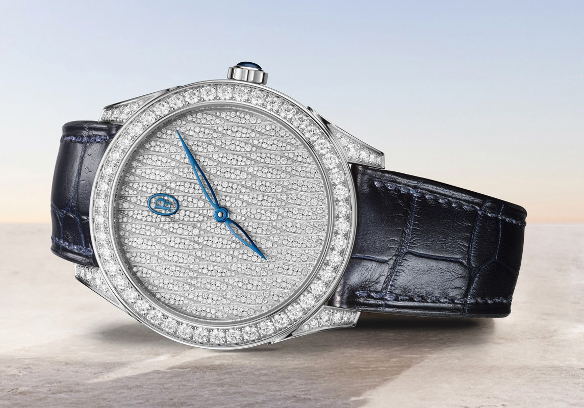 водонепроницаемость 30 м, корпус инкрустирован белыми бриллиантами