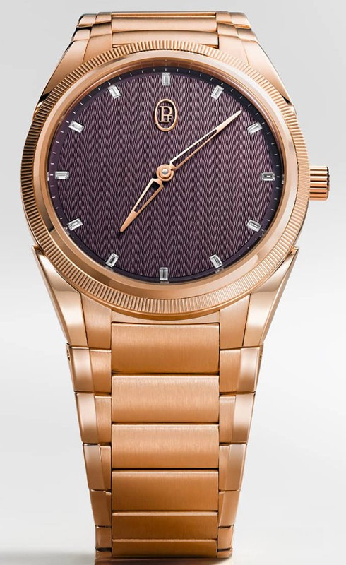 Часы Parmigiani Fleurier Tonda PF Automatic 36 представлены в корпусе размером 36 мм из розового золота 18к водонепроницаемостью 100 метров. Внутри корпуса установлен автоматический механизм, Калибр PF770, обладающий запасом хода 60 часов. На сером гилошированном циферблате с 12-ю белыми бриллиантами отображаются часы, минуты. Часы поставляются на браслете из розового золота 18к.