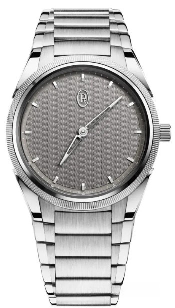 Часы Parmigiani Fleurier Tonda PF Automatic 36 представлены в корпусе размером 36 мм из нержавеющей стали водонепроницаемостью 100 метров. Внутри корпуса установлен автоматический механизм, Калибр PF770, обладающий запасом хода 60 часов. На сером гилошированном циферблате отображаются часы, минуты. Часы поставляются на браслете из нержавеющей стали.