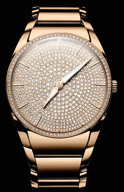 водонепроницаемость 30 м, безель из 84-х белых бриллиантов общим весом 0.646 ct.