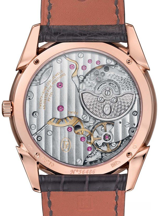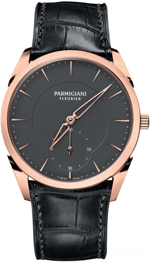 Циферблат новой модели Tonda 1950 от Parmigiani Fleurier серого цвета. Корпус размером 39 х 8 мм изготовлен из розового золота 18к. Ультраплоская конструкция калибра PF 701 достигается за счет оригинального платинового микроротора, встроенного в часовой механизм. Толщина составляет всего 2,6 мм, что стало настоящим прорывом в часовом производстве. Декоративная отделка часового механизма Tonda 1950 выполнена с особой тщательностью, которой славится часовая мануфактура Parmigiani Fleurier. Все детали часового механизма и корпуса часов Tonda 1950 создаются на мануфактуре, с исключительной заботой и желанием доказать, что каждый Калибр марки соответствует самым высоким стандартам качества.