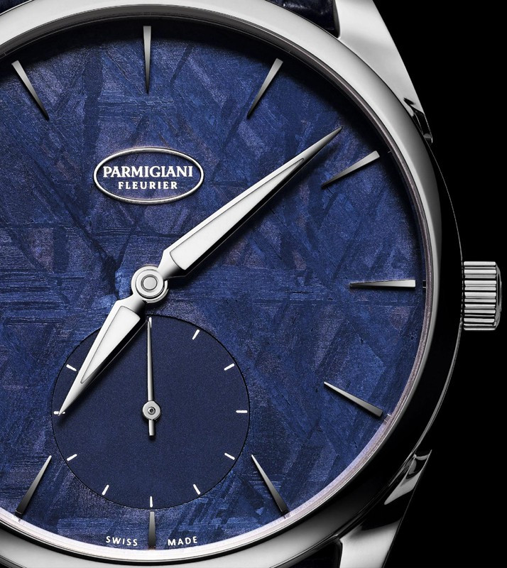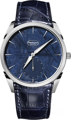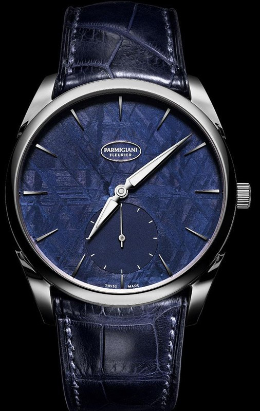 Циферблат новой модели Tonda 1950 из титана от Parmigiani Fleurier выполнен из метеорита. В сочетании с титаном циферблат из метеорита насыщенно-синего цвета удивляет своей оригинальностью, непохожестью на то, что окружает человека на планете Земля. Резкий перепад температур, влияющий на метеорит при его попадании в атмосферу, оставляет кристаллический след на поверхности камня. Без обработки камень выглядит однородным, но после серии кислотных ванн раскрывается его истинный чарующий рисунок. Ультраплоская конструкция калибра PF 701 достигается за счет оригинального платинового микроротора, встроенного в часовой механизм. Толщина составляет всего 2,6 мм, что стало настоящим прорывом в часовом производстве. Декоративная отделка часового механизма Tonda 1950 выполнена с особой тщательностью, которой славится часовая мануфактура Parmigiani Fleurier. Все детали часового механизма и корпуса часов Tonda 1950 создаются на мануфактуре, с исключительной заботой и желанием доказать, что каждый Калибр марки соответствует самым высоким стандартам качества.