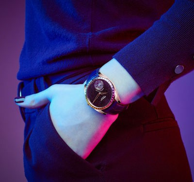 водонепроницаемость 30 м, безель из разноцветных багетных сапфиров