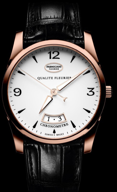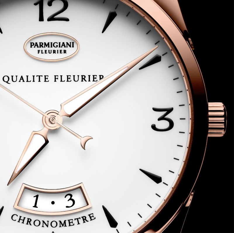 Часы Parmigiani Fleurier Tonda 39 QF выпущены в корпусе из розового золота 18к размером 39 х 8.85 мм и водонепроницаемостью 30 м. Внутри корпуса установлен автоматический, Калибр PF331QF с запасом хода 55 часов, механизм сертифицирован в качестве хронометра COSC. На белом циферблате отображаются часы, минуты, секунды, дата. Часы комплектуются ремешком из кожи аллигатора с вставкой из розового золота 18к.