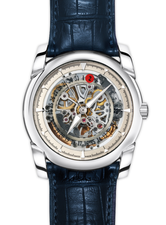 Часы Parmigiani Fleurier Tonda Skeleton представлены в корпусе из белого золота 18к размером 39 х 8.5 мм. Внутри корпуса находится скелетированный автоматический механизм, Калибр PF338, сертифицированный в качестве хронометра. Запас хода составляет 55 часов. На серебристом циферблате отображаются часы, минуты, секунды, дата. Часы комплектуются синим ремешком из кожи аллигатора с вставкой из белого золота 18к. Водонепроницаемость составляет 30 метров. Серия ограничена (500 шт.)