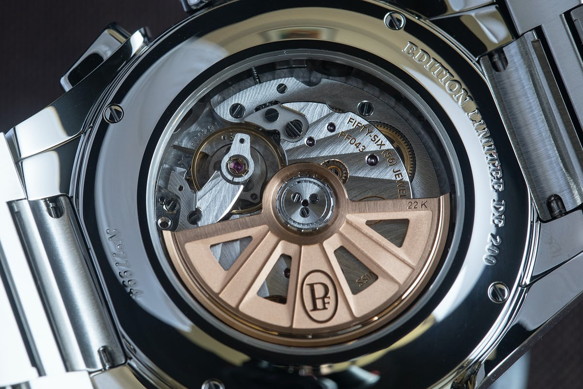 Часы Parmigiani Fleurier Tondagraphe GT Annual Calendar Chronograph выпущены в корпусе из нержавеющей стали размером 42 х 13.7 мм и водонепроницаемостью 100 м. Внутри корпуса установлен автоматический механизм с годовым календарем, Калибр PF043, обладающий запасом хода 45 часов. На черном гильошированном циферблате отображаются часы, минуты, секунды, дата, день недели, напкопители хронографа. Часы комплектуются браслетом из нержавеющей стали. Часы выпущены ограниченной серией 200 шт.