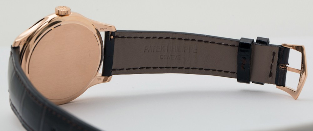 Часы Patek Philippe Calatrava 5227 5227R-001 выпущены в круглом корпусе из розового золота, 18к. Размер составляет 39 х 9,24 мм, водонепроницаемость до 30 м. Внутри корпуса установлен автоматический механизм, Калибр 324 SC, обеспечивающий запас хода 48 часов. На бежевом циферблате отображаются часы, минуты, секунды, дата. Часы комплектуются ремешком из кожи аллигатора с вставкой из розового золота, 18к.