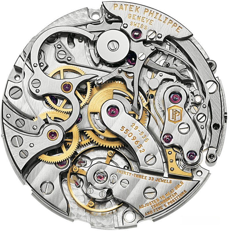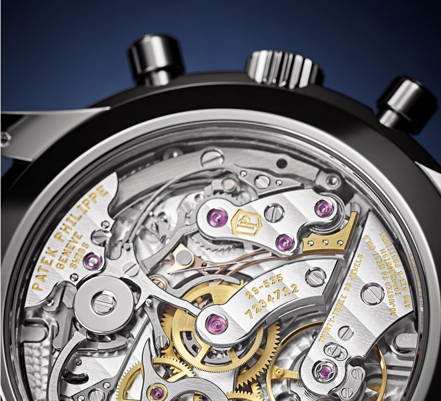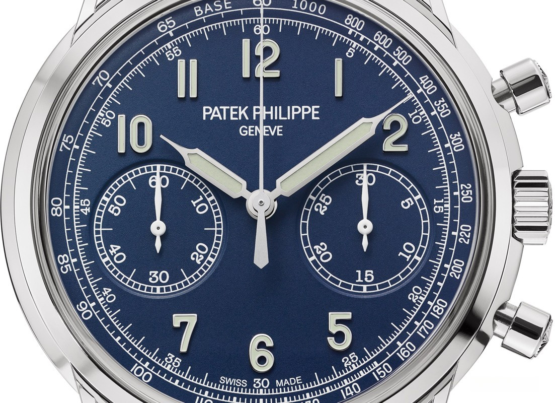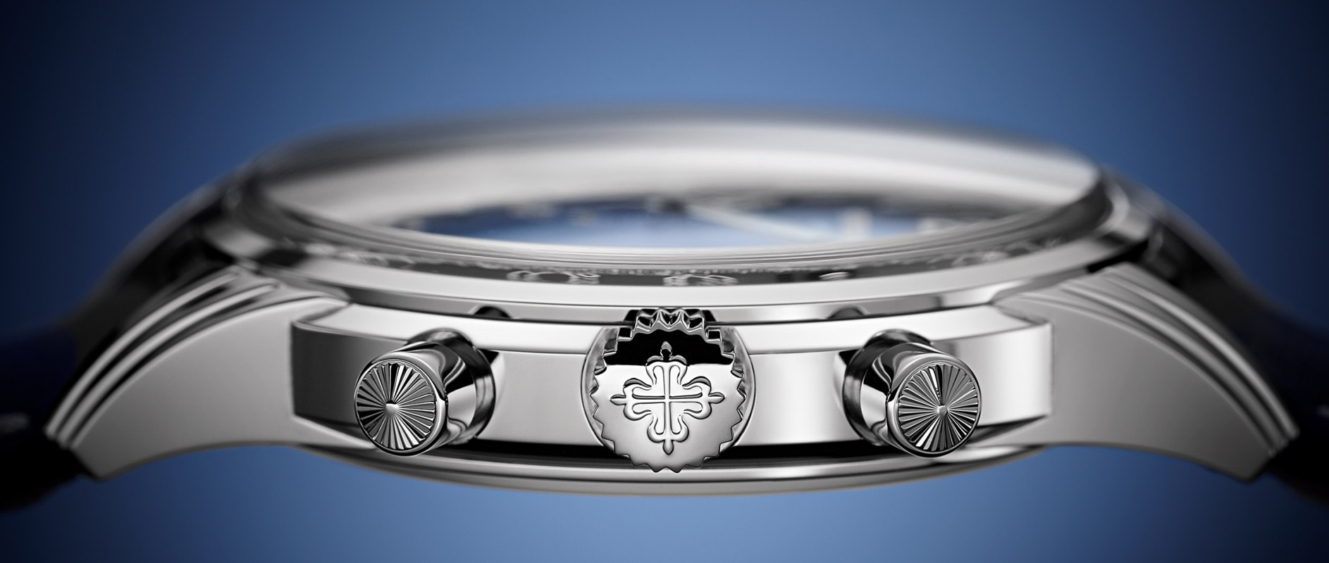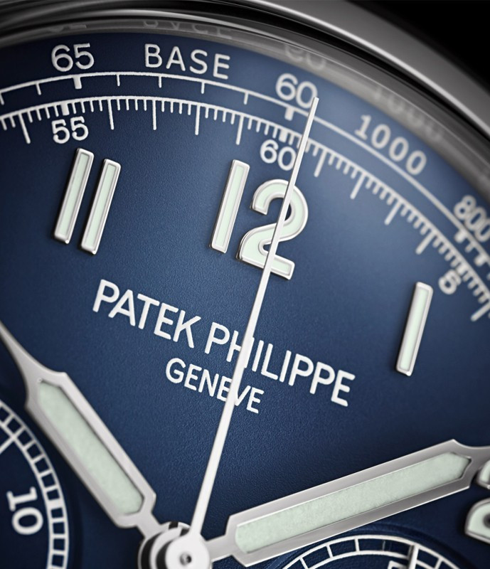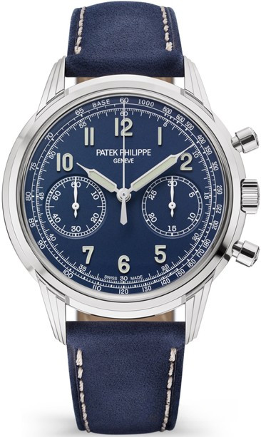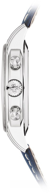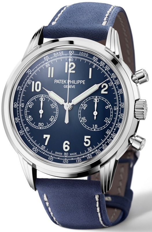 Patek Philippe представляет переосмысленную версию мужских часов, оснащенных хронографом классической конструкции с колонным колесом, горизонтальным сцеплением и ручным заводом. Дизайн новой модели с корпусом из белого золота дополнен круглыми кнопками с гильошированным узором и трехуровневыми ушками. Слегка выпуклое сапфировое стекло подчеркивает винтажный характер часов. Также полностью было изменено оформление циферблата: с синим фоном выразительно контрастируют стрелки и накладные арабские цифры из белого золота с люминесцентным покрытием. Механизм с ручным заводом. Калибр CH 29-535 PS. Малая секундная стрелка. Синий лакированный циферблат, накладные золотые цифры с люминесцентным покрытием. Тахиметрическая шкала. Корпус из белого золото 18к. Задняя крышка из сапфирового стекла. Водонепроницаемость до 30 метров. Диаметр: 41 мм. Высота: 11,45 мм. Прошитый вручную ремешок, телячья кожа темно-синего цвета. Раскладывающаяся застежка.