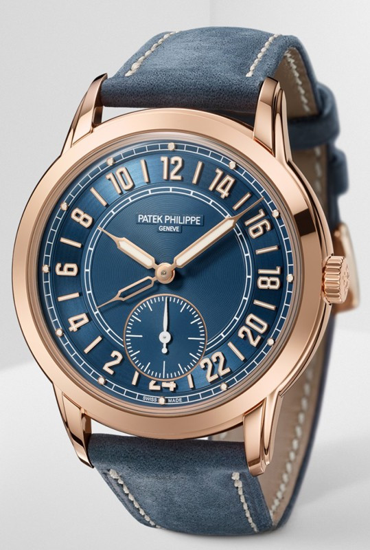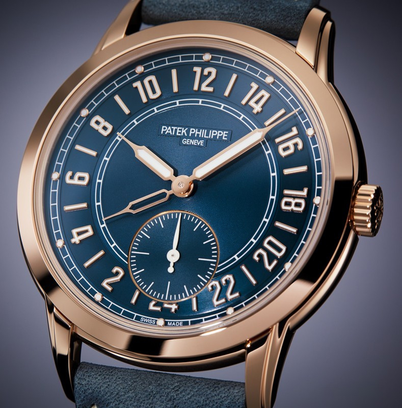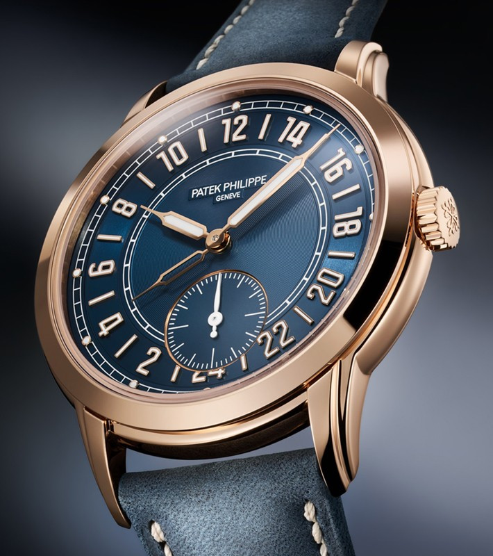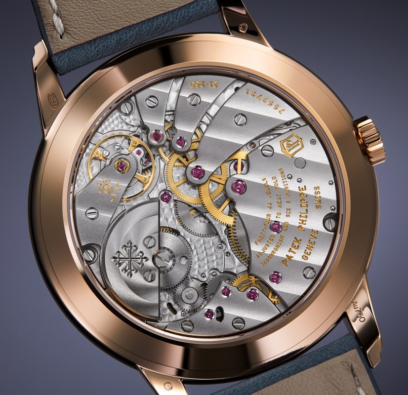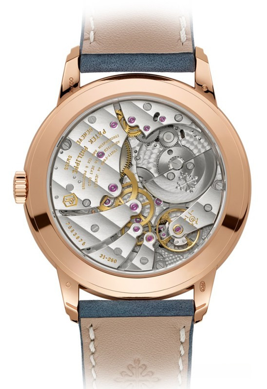Часы Patek Philippe Calatrava 5224 представлены в корпусе размером 42 x 9.85 мм из розового золота 18к водонепроницаемостью 30 метров. Внутри корпуса установлен автоматический механизм, Калибр 31-260 PS FUS 24H, обладающий запасом хода 48 часов. На синем циферблате отображаются часы, минуты, секунды. Часы поставляются на кожаном ремешке с золотой застежкой.