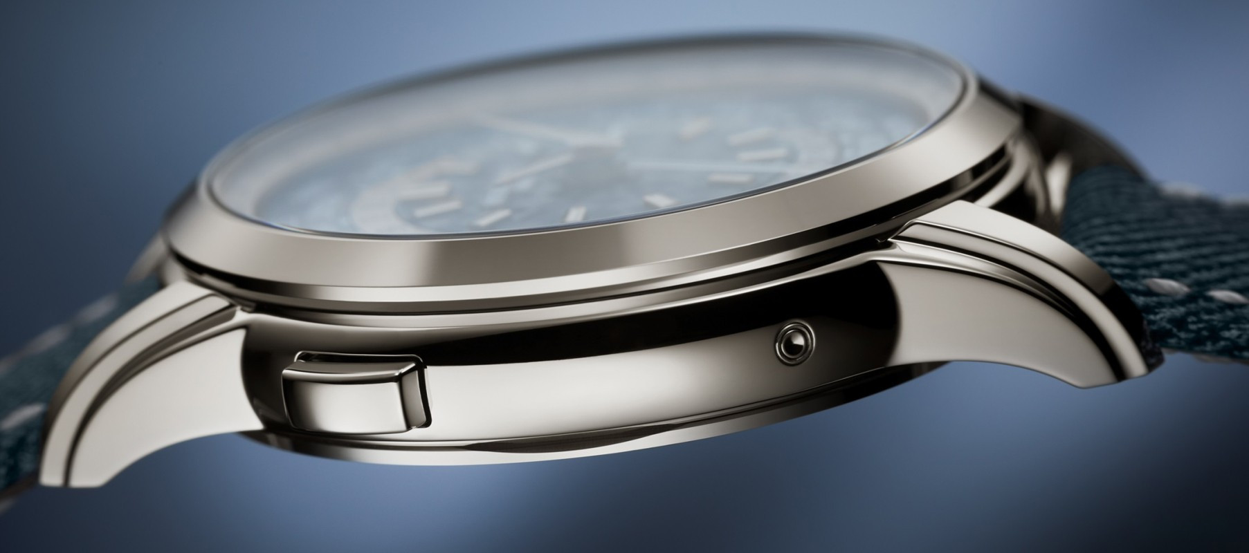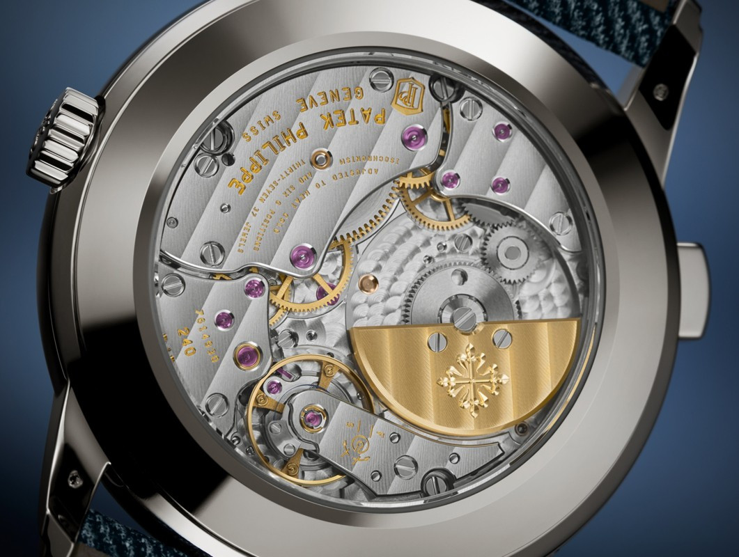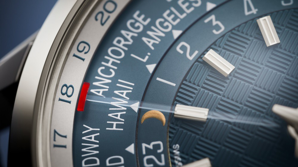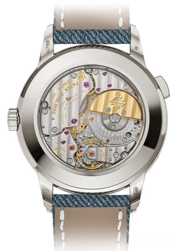 Часы Patek Philippe Complications представлены в корпусе размером 40 х 11.57 мм из белого золота 18к водонепроницаемостью 30 метров. Внутри корпуса установлен механизм с ручным заводом, Калибр 240 HU C, обладающий запасом хода 45 часов. На сером гильшированном циферблате отображаются часы, минуты, дата, индикатор день/ночь, ворлдтаймер. Часы поставляются на текстильном ремешке с золотой застежкой.