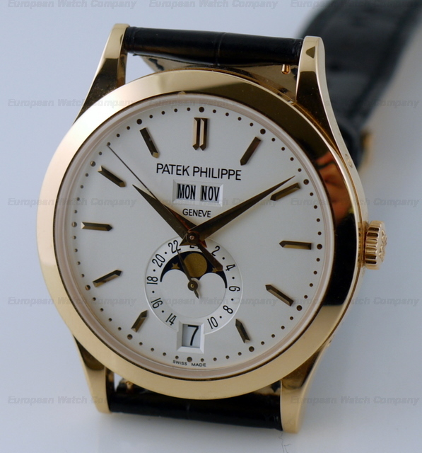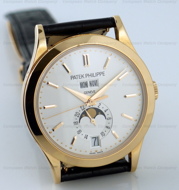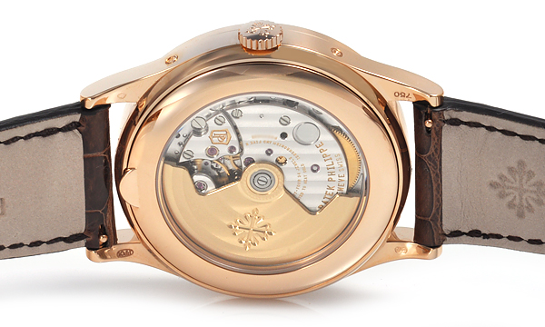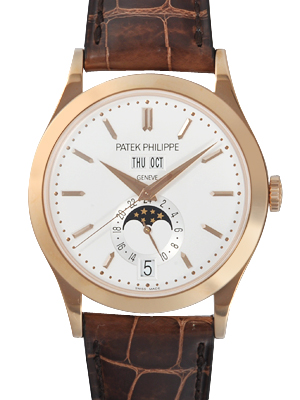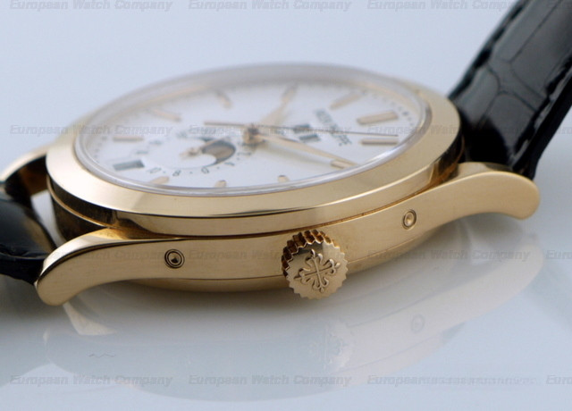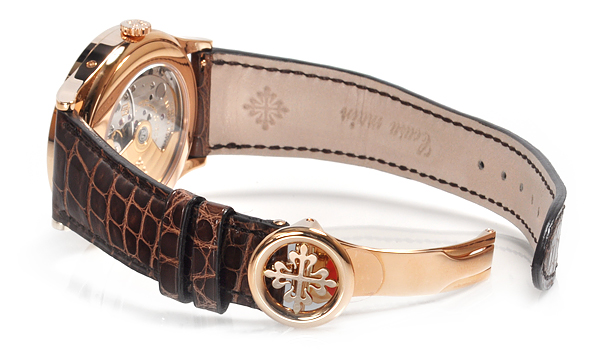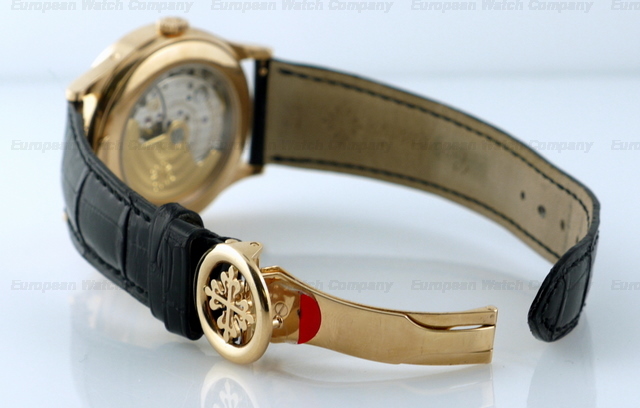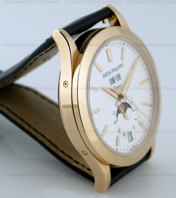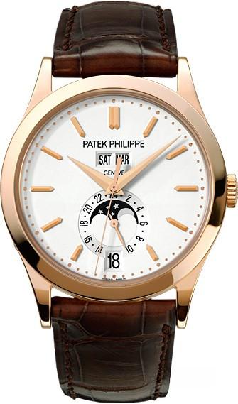 Астрономические часы Patek Philippe Complications 5396 5396R-011 выпущены в круглом корпусе из розового золота, 18к. Размер составляет 38 мм, водонепроницаемость до 30 м и годовым календарем. Внутри корпуса установлен автоматический механизм, Калибр Patek Philippe 324 S QA LU 24 H, обеспечивающий запас хода 45 часов. На белом циферблате отображаются часы, минуты, секунды, дата, день недели, месяц, фаза луны, 24-х часовой указатель. Часы комплектуются ремешком из кожи аллигатора с золотой 18к вставкой и откидной застежкой.