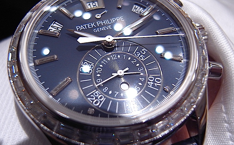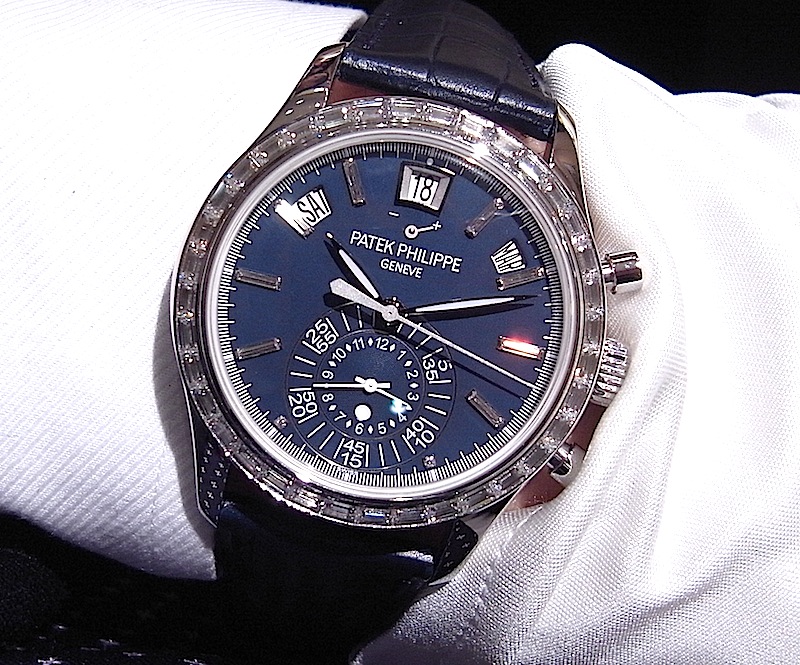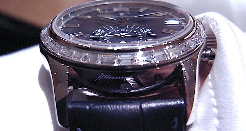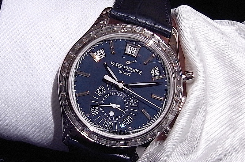 водонепроницаемость 30 м, годовой календарь, безель из 36-и белых багетных бриллиантов 3.48 ct.