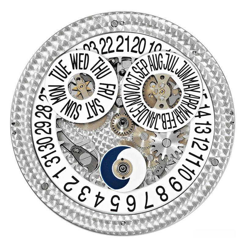 водонепроницаемость 30 м, годовой календарь, безель из 36-и белых багетных бриллиантов 3.48 ct.