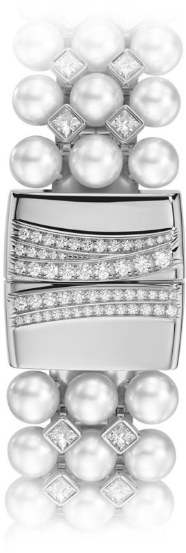 браслет из белого золота 18к, белого жемчуга и белых бриллиантов