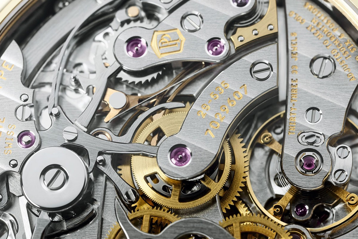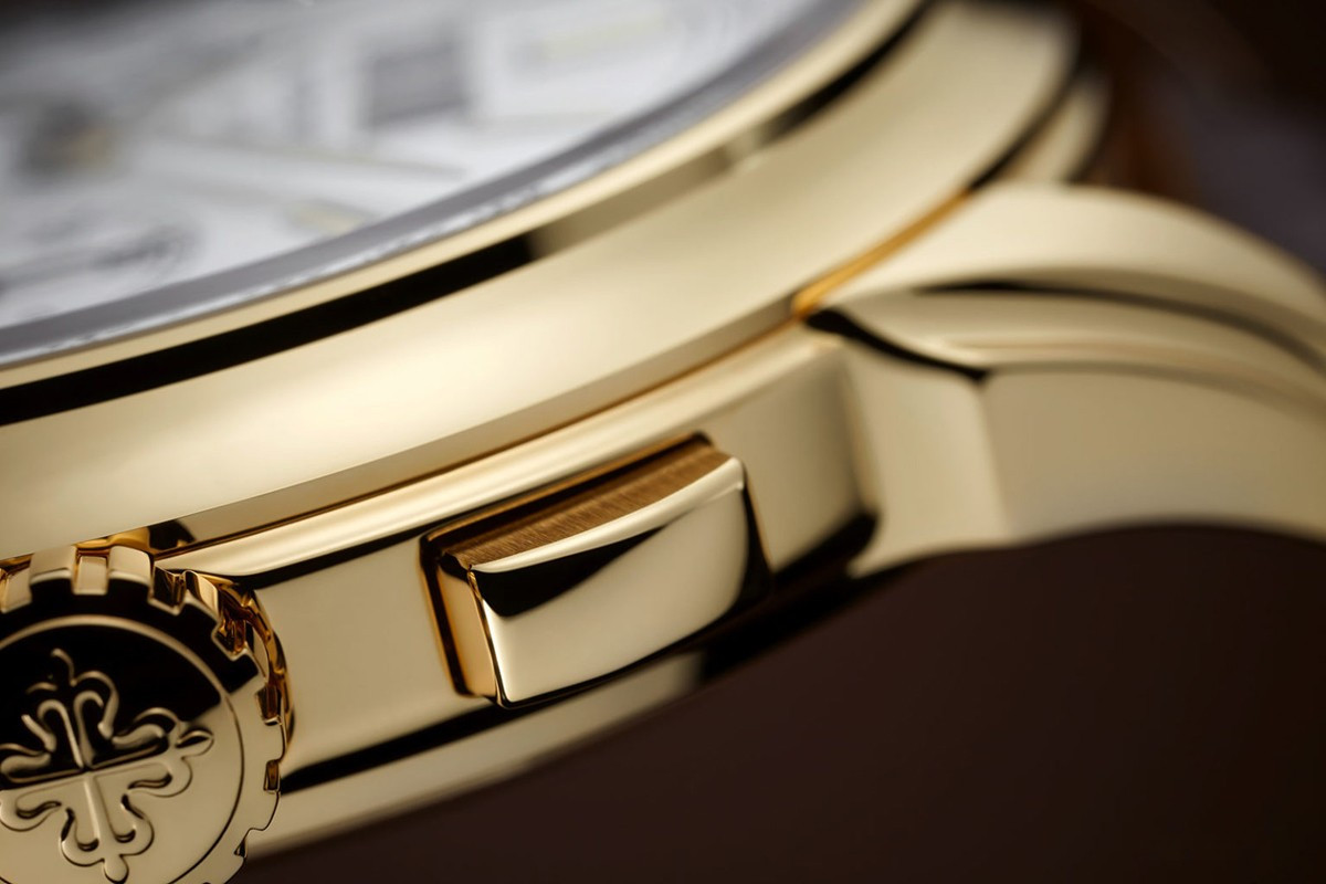 Часы элитного швейцарского бренда Patek Philippe – всегда эталон точности и безупречного вкуса. Часы имеют множество функций. Одна из них – вечный календарь, точно фиксирующий число, день недели и месяц с учетом цикла високосного года. Вторая – астрономические часы, следящие за лунным циклом. И, конечно, часы имеют индикатор «день – ночь». Калибр CH 29-535 PS Q с ручным заводом имеет запас хода 65 часов. Его работа видна за прозрачной задней крышкой, изготовленной из сапфирового стекла. Калибр состоит из 456 деталей, 33 камней, имеет баланс Gyromax и отмечен Женевским клеймом качества. Его оформление – результат ручной работы в стиле Cotes de Geneve с применением техники Anglage. Корпус часов изготовлен из желтого золота 18к. Циферблат серебристый. Часы поставляются на ремешке из кожи аллигатора с вставкой из желтого золота 18к.