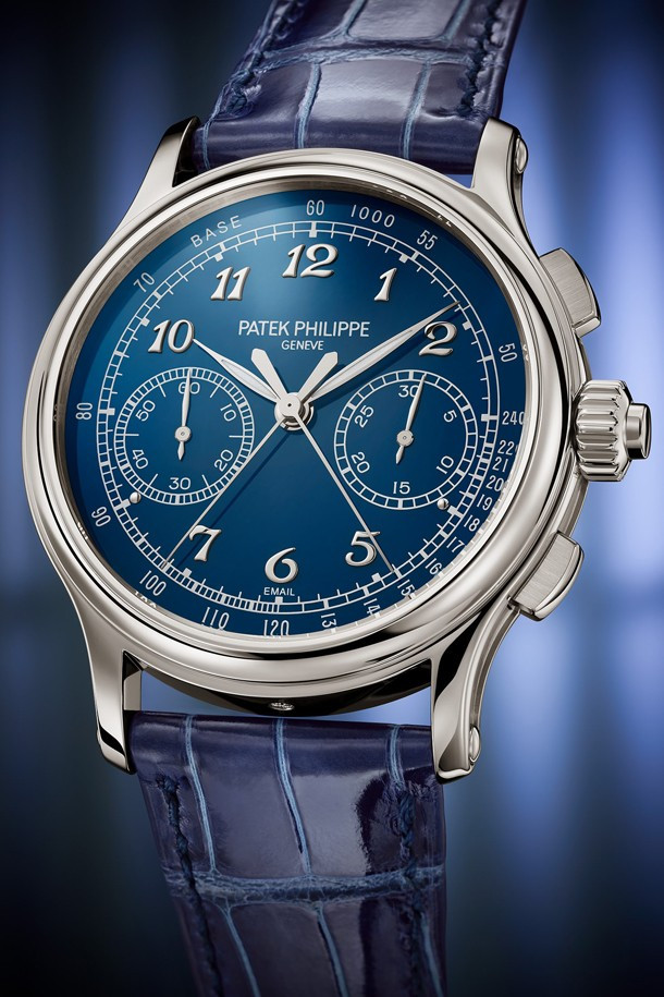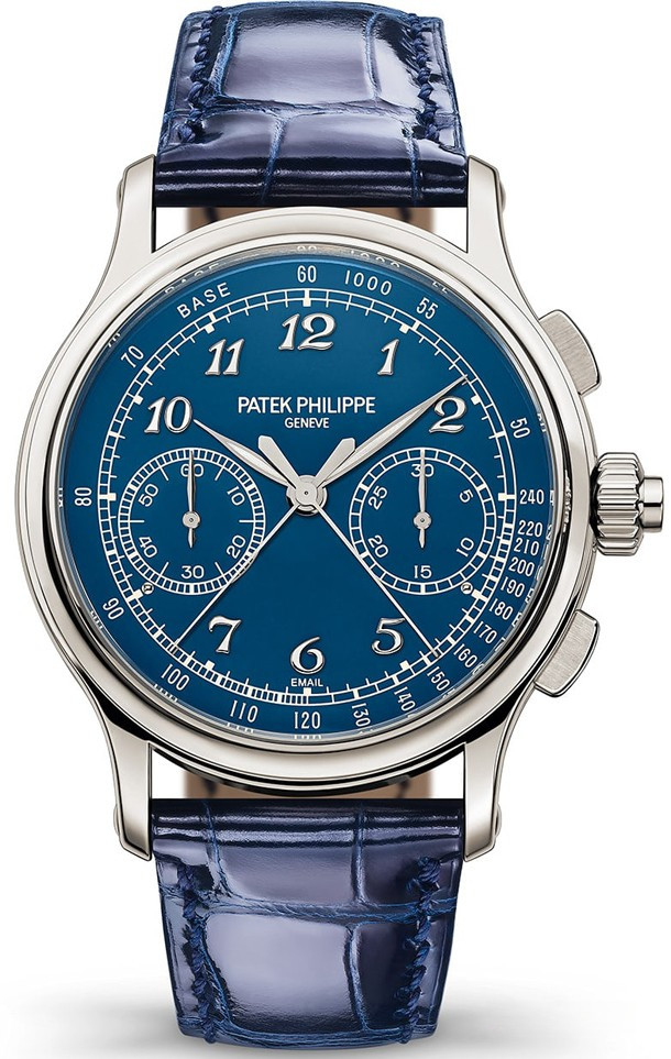 Часы 5370P-011 с функцией сплит-хронографа изготовлены в корпусе из платины 950 диаметром 41 мм и водонепроницаемостью до 30 метров. Внутри корпуса установлен механизм с ручным заводом, Калибр CHR 29-535 PS, обладающий запасом хода 65 часов. На синем циферблате отображаются часы, минуты, секунды, тахиметр. Модель комплектуется синим ремешком из кожи аллигатора с платиновой вставкой.