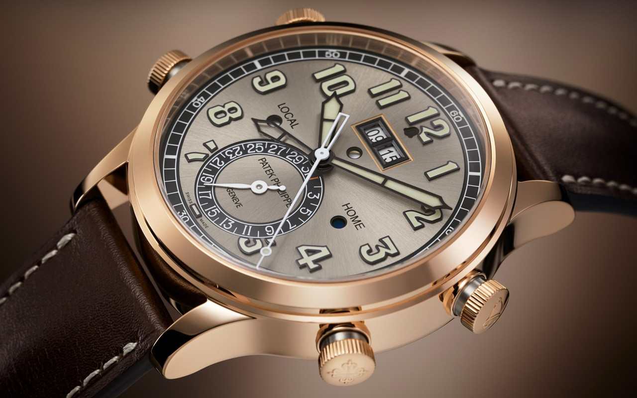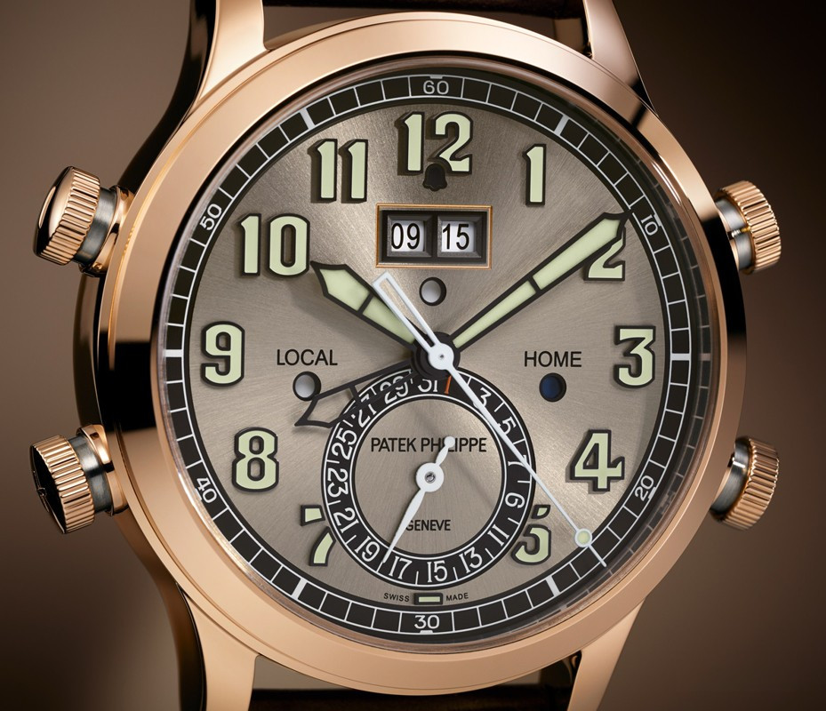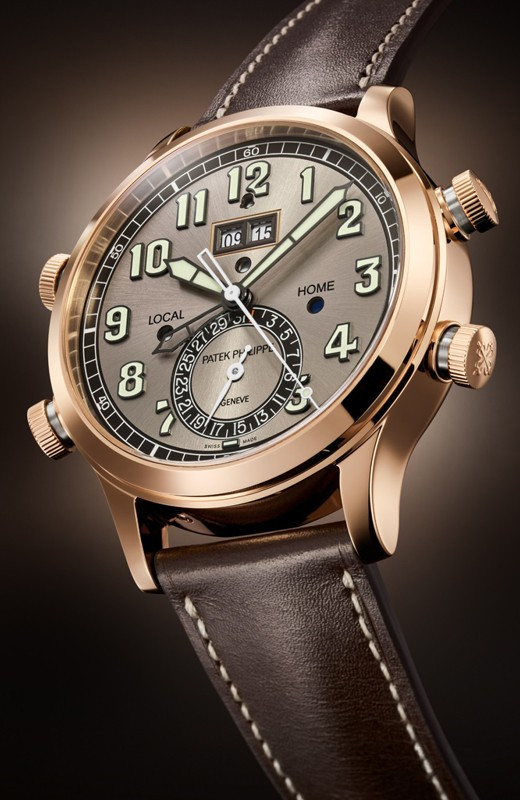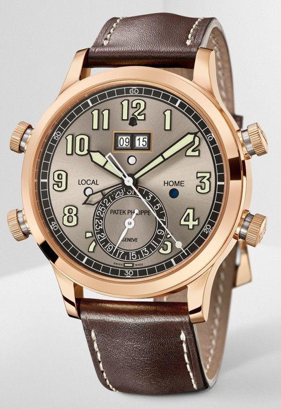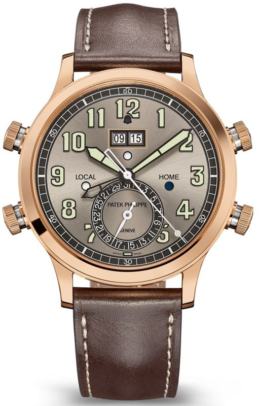 Patek Philippe представляет новую модель с автоматическим заводом и сложной функцией категории Grand Complication. Система индикации времени двух часовых поясов Travel Time была дополнена 24-часовым будильником с классическим гонгом. Специалисты мануфактуры разработали интегрированный механизм нового типа, на оснастивший часы будильник оформляется четыре патента. Идеальный спутник в любом путешествии, эти часы имеют характерный для моделей Pilot корпус, изготовленный из розового золота 18к. Механизм с автоматическим заводом. Калибр AL 30-660 S C FUS. Индикация времени боя будильника в окошке. Индикация включения будильника в окошке. Индикация времени суток боя будильника в окошке. Индикация времени в двух часовых поясах: в месте нахождения и месте проживания. Индикация времени суток в месте нахождения и месте проживания в окошках. Индикация даты в месте нахождения с помощью стрелки. Центральная секундная стрелка. Серый циферблат с узором «солнечные лучи», накладные золотые цифры с люминесцентным покрытием. Сменные задние крышки из металла и сапфирового стекла. Водонепроницаемость до 30 метров. Диаметр: 42,2 мм. Высота: 11,6 мм. Кожаный ремешок. Классическая застежка.