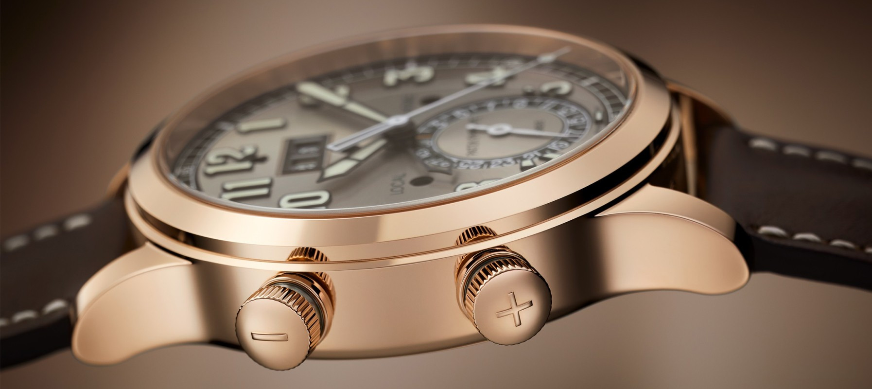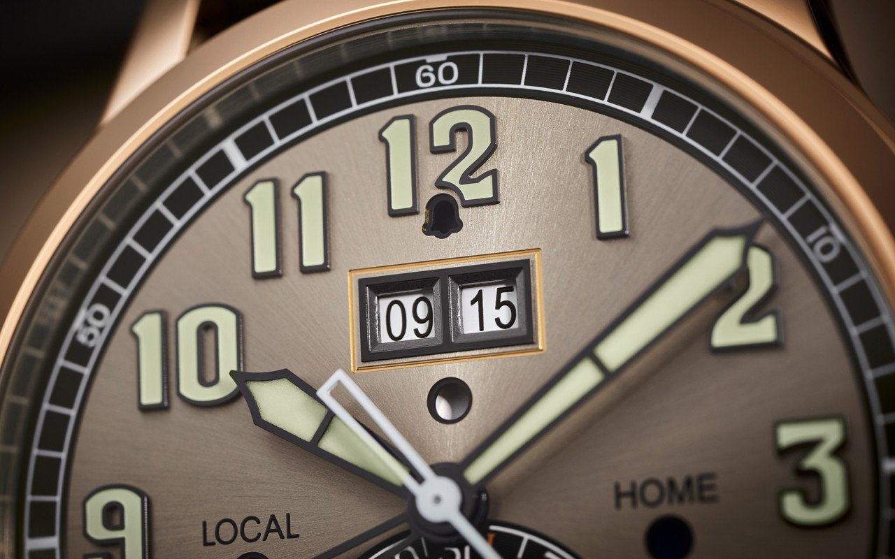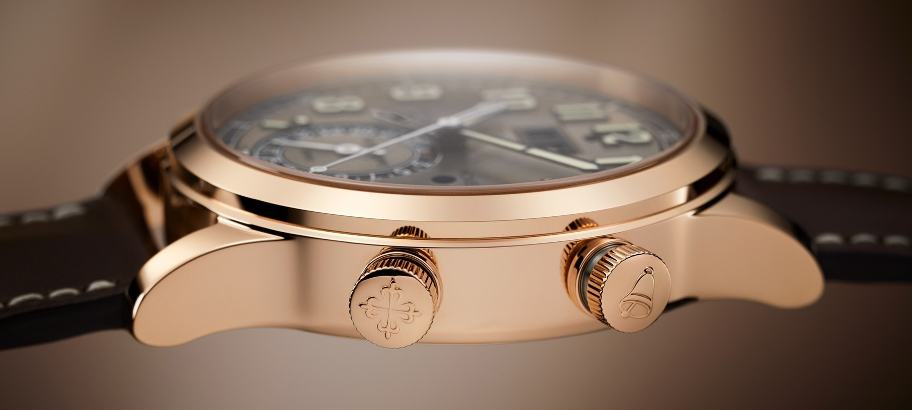 Patek Philippe представляет новую модель с автоматическим заводом и сложной функцией категории Grand Complication. Система индикации времени двух часовых поясов Travel Time была дополнена 24-часовым будильником с классическим гонгом. Специалисты мануфактуры разработали интегрированный механизм нового типа, на оснастивший часы будильник оформляется четыре патента. Идеальный спутник в любом путешествии, эти часы имеют характерный для моделей Pilot корпус, изготовленный из розового золота 18к. Механизм с автоматическим заводом. Калибр AL 30-660 S C FUS. Индикация времени боя будильника в окошке. Индикация включения будильника в окошке. Индикация времени суток боя будильника в окошке. Индикация времени в двух часовых поясах: в месте нахождения и месте проживания. Индикация времени суток в месте нахождения и месте проживания в окошках. Индикация даты в месте нахождения с помощью стрелки. Центральная секундная стрелка. Серый циферблат с узором «солнечные лучи», накладные золотые цифры с люминесцентным покрытием. Сменные задние крышки из металла и сапфирового стекла. Водонепроницаемость до 30 метров. Диаметр: 42,2 мм. Высота: 11,6 мм. Кожаный ремешок. Классическая застежка.
