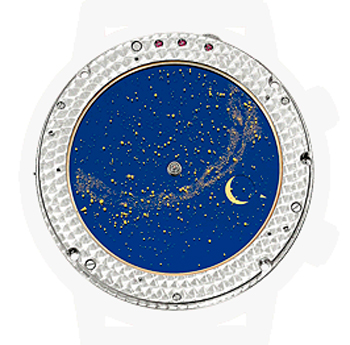 Астрономические часы Patek Philippe Grand Complications 6102 Celestial 6102P-001 выпущены в круглом корпусе из 950 платины. Размер составляет 44 мм с водонепроницаемостью 30 м. Внутри корпуса установлен автоматический механизм, Калибр Patek Philippe 240 LU CL C, обеспечивающий запас хода 48 часов. На синем с картой звездного неба циферблате отображаются часы, минуты, дата, фаза и орбита луны, карта звездное небо, момент прохождения Сириуса и луны через меридиан. Часы комплектуются ремешком из кожи аллигатора с платиновой вставкой.