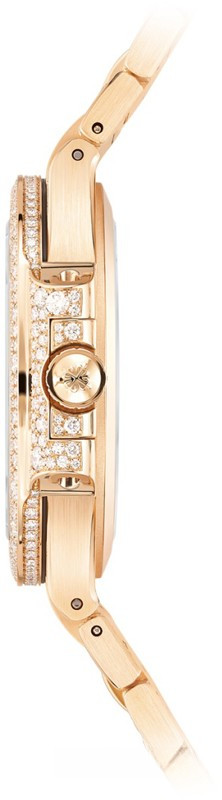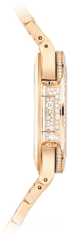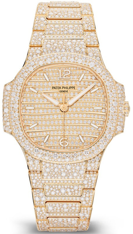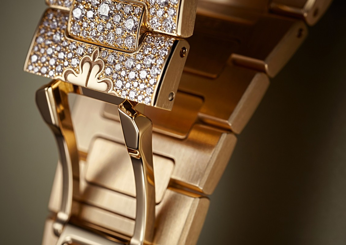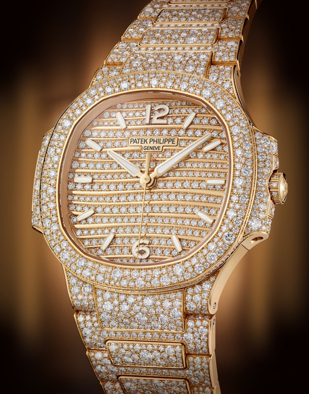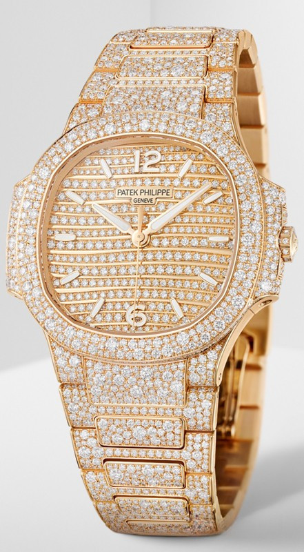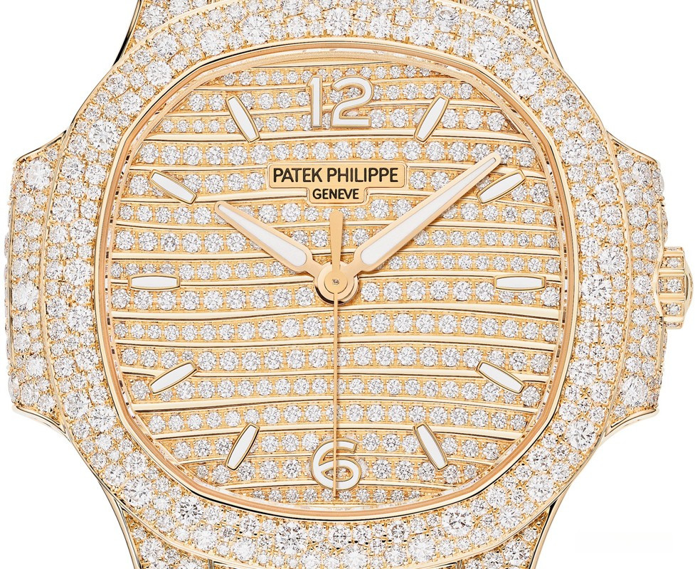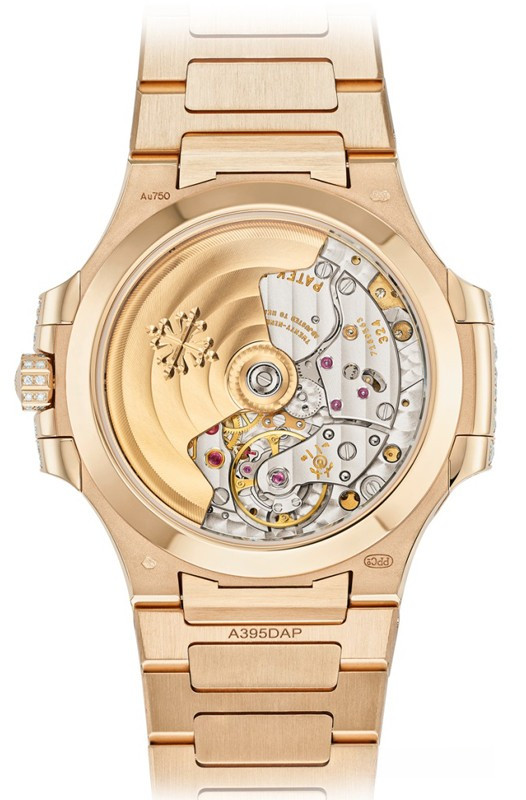 Часы Nautilus категории Высокое ювелирное искусство представлены в новой версии из розового золота, полностью покрытой бриллиантами, инкрустированными в технике «снег» на корпусе, безеле и браслете. На циферблате ряды камней образуют небольшой рельефный волнообразный узор, характерный для женской коллекции Nautilus. Накладные часовые метки, арабские цифры и стрелки с люминесцентным покрытием обеспечивают идеальную считываемость показаний. В корпус из розового золота установлен калибр с автоматическим заводом, который можно рассмотреть через прозрачную заднюю крышку из сапфирового стекла. Новую модель Nautilus категории Высокое ювелирное искусство украшают 2553 не имеющих внутренних включений бриллианта классической огранки категории Top Wesselton (~ 12,69 карата).