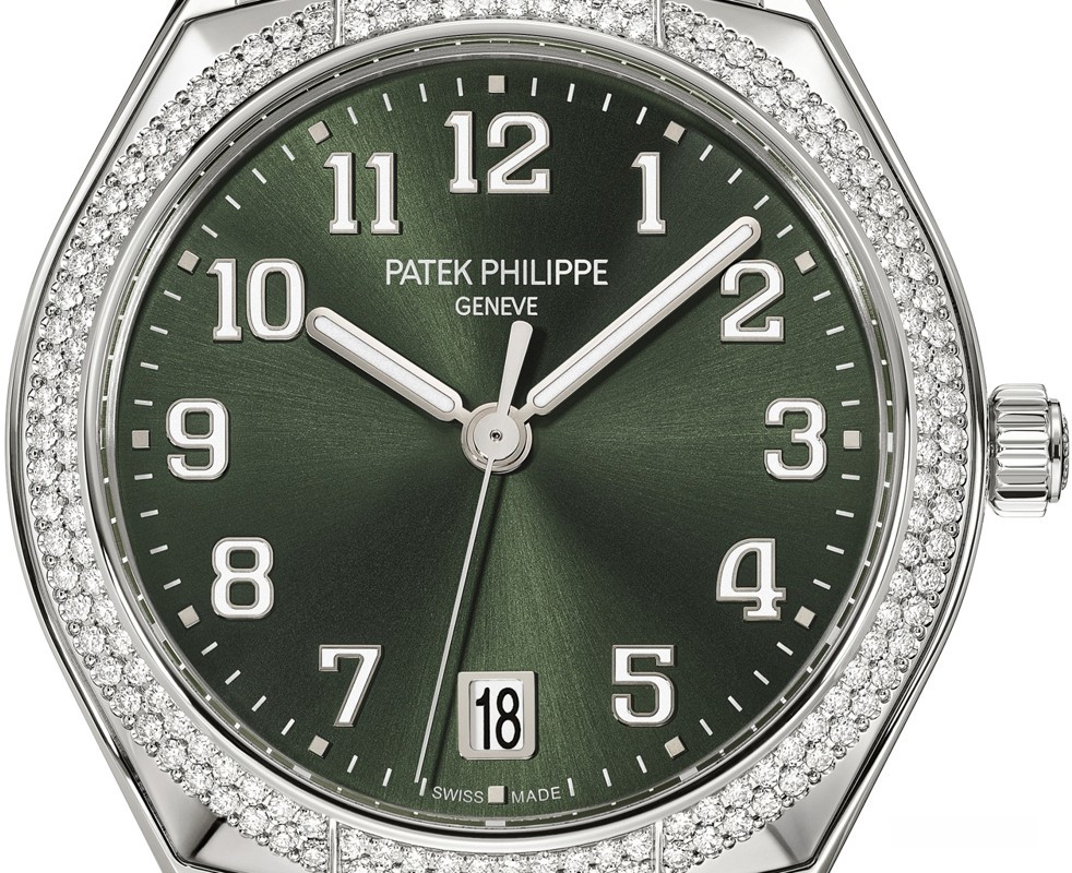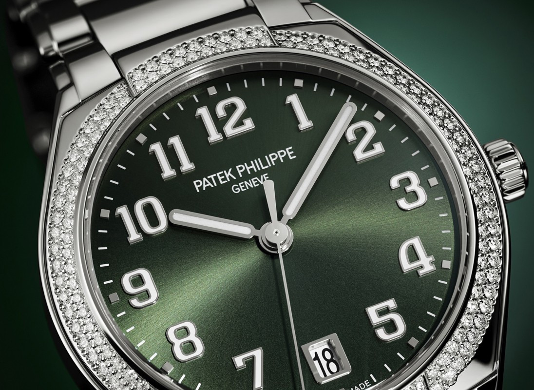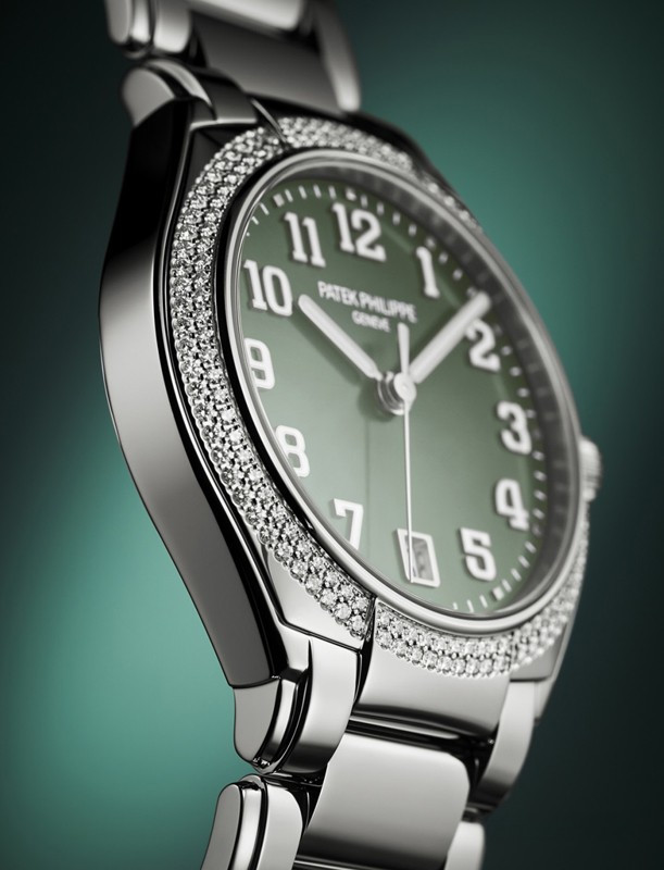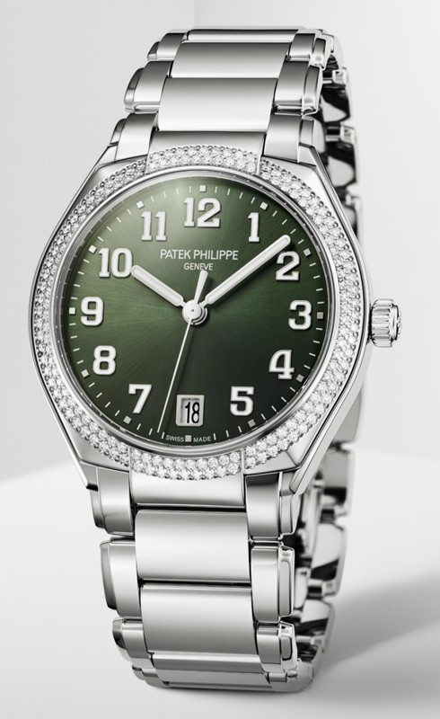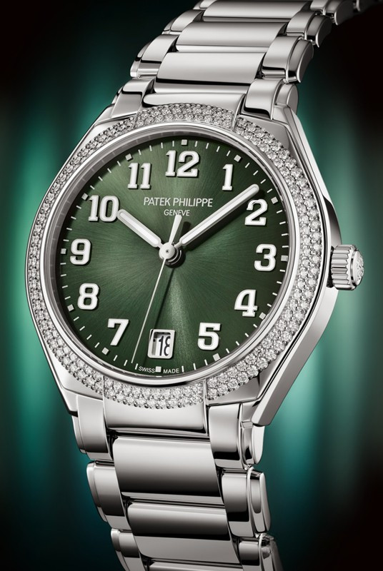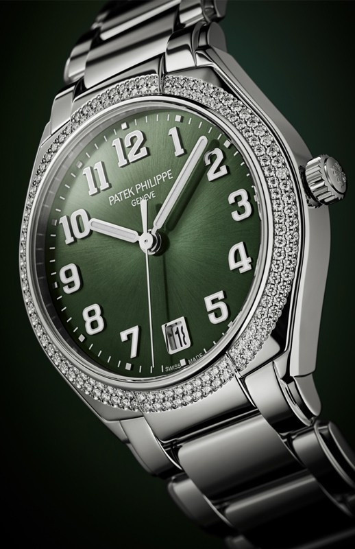 Компания Patek Philippe выпустила новые женские часы с автоматическим заводом, которые задают ритм жизни современной активной женщины и дарят ей стильный облик. Новый символ женственной элегантности, модель Twenty~4 Automatic впервые в коллекции помещена в круглый корпус. Версия из нержавеющей стали предлагается с зеленым циферблатом, украшенным узором «солнечные лучи». Ободок отделан бриллиантами. Часы оснащены Калибром 324 S C с автоматическим заводом, который можно рассмотреть через заднюю крышку из сапфирового стекла, а также часовой, минутной и центральной секундной стрелкой и небольшим окошком даты в положении «6 часов». Накладные цифры с люминесцентным покрытием. Диаметр: 36 мм. Высота: 10,05 мм. Водонепроницаемость до 30 метров. Задняя крышка из сапфирового стекла. Браслет из нержавеющей стали. Раскладывающаяся застежка.