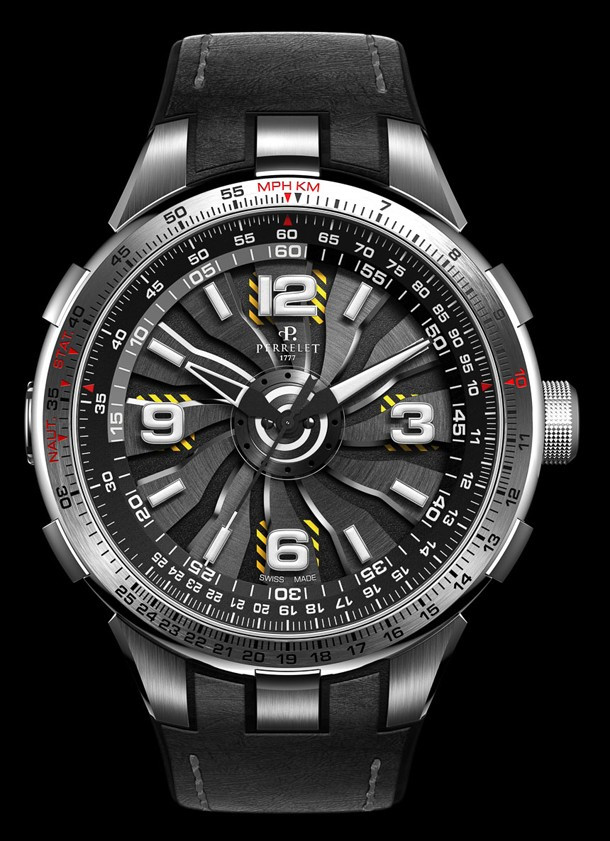 Turbine Pilot 2014 - первая настоящая авиационная версия Turbine. Turbine Pilot с диаметром 48 мм являются большими часами линии Turbine, но не самыми большими в коллекции Perrelet. Корпус изготовлен из нержавеющей стали. Несмотря на ширину, они всего лишь 13.65 мм толщиной, имеют тонкий профиль в соотношении ширины и толщины. Корпус продолжает соблюдать дизайн оригинала с боковыми выступами и ушками, который представляет собой современную версию классических Perrelet. Естественно Turbine Pilot имеет некоторые пилотные функции. У Turbine Pilot есть вращающийся безель с логарифмической линейкой вместе с отдельной заводной головкой. Эта функция добавляет техническое значение в общий дизайн, и представляет собой еще один элемент, за который люди готовы доплачивать, несмотря на то, что возможно не станут его использовать. Довольно разборчивый циферблат покрыт сапфировым стеклом над вращающимися лопастями двигателя. Будучи авиационными часами, они имеют необходимый уровень сложности циферблата. Внутри часов Perrelet находится автоматический Калибр P-331.