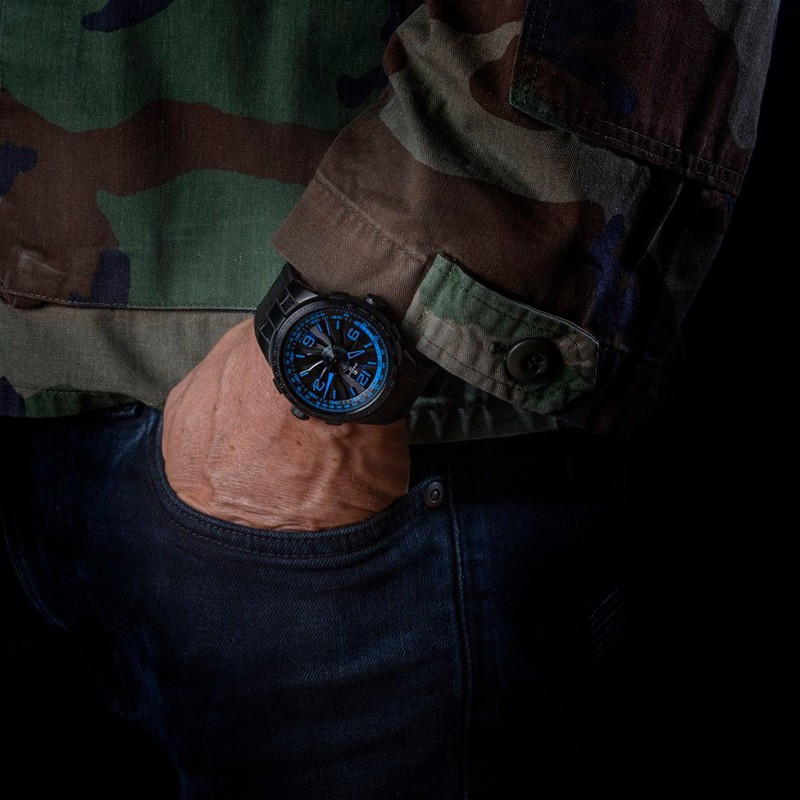 Turbine Pilot - первая настоящая авиационная версия Turbine. Turbine Pilot с диаметром 48 мм являются большими часами линии Turbine, но не самыми большими в коллекции Perrelet. Корпус изготовлен из нержавеющей стали с покрытием PVD. Несмотря на ширину, они всего лишь 13.48 мм толщиной, имеют тонкий профиль в соотношении ширины и толщины. Корпус продолжает соблюдать дизайн оригинала с боковыми выступами и ушками, который представляет собой современную версию классических Perrelet. Естественно Turbine Pilot имеет некоторые пилотные функции. У Turbine Pilot есть вращающийся безель с логарифмической линейкой вместе с отдельной заводной головкой. Эта функция добавляет техническое значение в общий дизайн. Довольно разборчивый циферблат покрыт сапфировым стеклом над вращающимися лопастями двигателя. Будучи авиационными часами, они имеют необходимый уровень сложности циферблата. Внутри часов Perrelet находится автоматический Калибр P-331.
