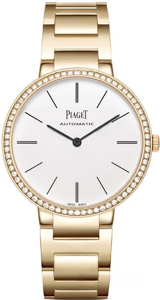 Часы Altiplano с браслетом из золота – незаменимый аксессуар в роскошном городском стиле – добавят ноту элегантности в повседневный облик. Корпус из розового золота диаметром 34 мм, строгий вневременной дизайн, лаконичный циферблат с изящными стрелками идеально сочетаются с современной эстетикой браслета из полированного розового золота. Благодаря эргономичности и гибкости браслета эти роскошные часы отличает несравненное удобство в ношении. Часы, выдержанные в стиле повседневной роскоши, оснащены мануфактурным механическим калибром 534P с автоподзаводом, обеспечивающим индикацию часов и минут и обладающим запасом хода до 42 часов. Как и во всех механизмах Piaget, отделка деталей выполнена согласно лучшим канонам часового искусства и включает круговой узор Côtes de Genève, жемчужное зернение платины, мосты со срезанными углами. Безель из белых бриллиантов.