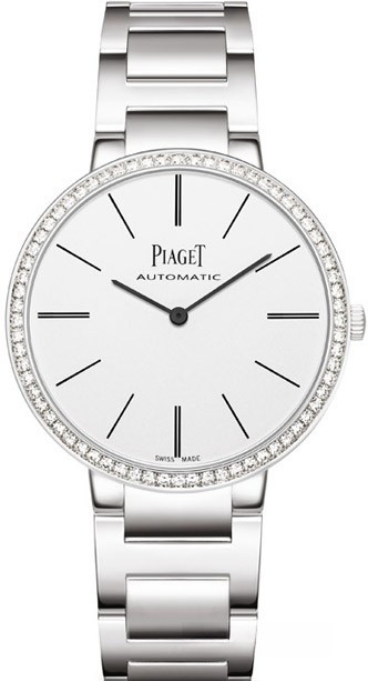 Часы Altiplano с браслетом из золота – незаменимый аксессуар в роскошном городском стиле – добавят ноту элегантности в повседневный облик. Корпус из белого золота диаметром 34 мм, строгий вневременной дизайн, лаконичный циферблат с изящными стрелками идеально сочетаются с современной эстетикой браслета из полированного белого золота. Благодаря эргономичности и гибкости браслета эти роскошные часы отличает несравненное удобство в ношении. Часы, выдержанные в стиле повседневной роскоши, оснащены мануфактурным механическим калибром 534P с автоподзаводом, обеспечивающим индикацию часов и минут и обладающим запасом хода до 42 часов. Как и во всех механизмах Piaget, отделка деталей выполнена согласно лучшим канонам часового искусства и включает круговой узор Côtes de Genève, жемчужное зернение платины, мосты со срезанными углами. Безель из белых бриллиантов.