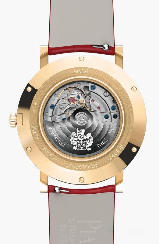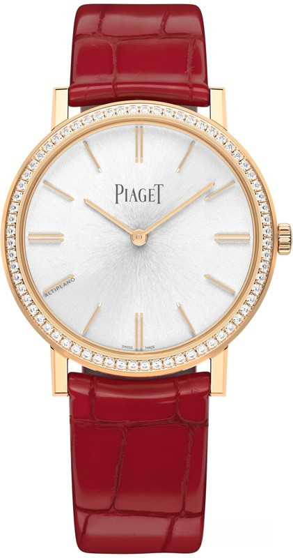 Часы Altiplano – незаменимый аксессуар в роскошном городском стиле – добавят ноту элегантности в повседневный облик. Корпус из розового золота диаметром 35 мм, строгий вневременной дизайн, лаконичный циферблат с изящными стрелками идеально сочетаются с современной эстетикой кожаного рмемшка. Часы, выдержанные в стиле повседневной роскоши, оснащены мануфактурным механическим калибром 510P с автоподзаводом, обеспечивающим индикацию часов и минут и обладающим запасом хода до 43 часов. Как и во всех механизмах Piaget, отделка деталей выполнена согласно лучшим канонам часового искусства и включает круговой узор Côtes de Genève, жемчужное зернение платины, мосты со срезанными углами. Безель из белых бриллиантов.