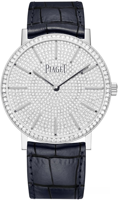 Часы Piaget Altiplano Automatic 40 mm представлены в корпусе из белого золота 18к размером 40 х 6.36 мм водонепроницаемостью 30 метров. Внутри корпуса находится автоматический механизм, Калибр Piaget 1200P, обладающий запасом хода 44 часа. На циферблате с белыми бриллиантами отображаются часы, минуты. Часы поставляются на ремешке из кожи аллигатора с вставкой из белого золота 18к. Безель из белых бриллиантов.