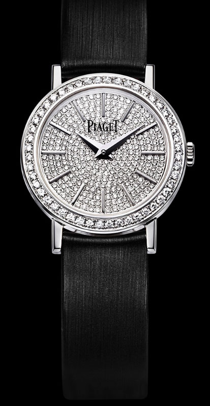 водонепроницаемость 30 м, безель из 48-ми белых бриллиантов весом 0.4 ct.