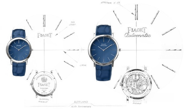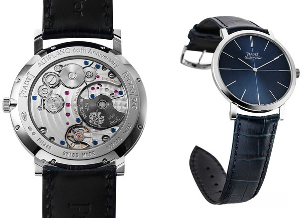 Модель 60 Jahre Piaget Altiplano 43 mm имеет круглый полированный корпус диаметром 43 мм, изготовленный из 18-каратного белого золота. На торце рифленой заводной головки, расположенной на 3 часах, выгравирован логотип бренда Piaget. Сапфировое стекло защищает циферблат синего цвета с лучистой отделкой, с крестом в его центре (который украшал циферблаты ранних исторических моделей Altiplano), накладными продолговатыми часовыми индексами и нитевидными стрелками, выполненными из белого золота. Модель оснащена мануфактурным швейцарским механизмом с автоматическим заводом 1200P, с функциями индикации часов и минут (посредством соответствующих центральных стрелок). Поставляется на синем ремешке из кожи аллигатора с застежкой из белого золота 18к. Лимитированный выпуск 360 экземпляров.