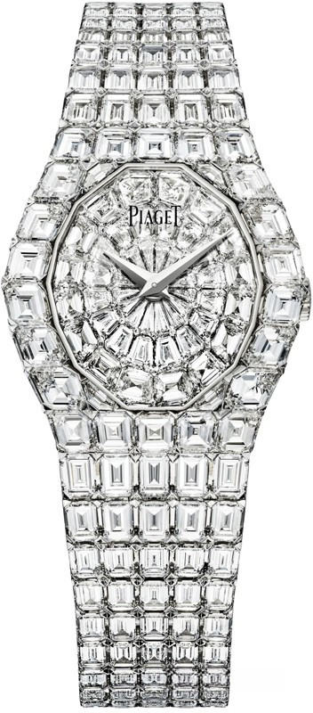 Часы Piaget Limelight Aura представлены в корпусе из белого золота 18к размером 30 х 27 мм водонепроницаемостью 30 метров. Внутри корпуса находится механизм с ручным заводом, Калибр Piaget 430P, обладающий запасом хода 43 часа. На циферблате с белыми бриллиантами отображаются часы, минуты. Часы поставляются на браслете из белого золота 18к, инкрустированном белыми бриллиантами. Корпус инкрустирован белыми бриллиантами.