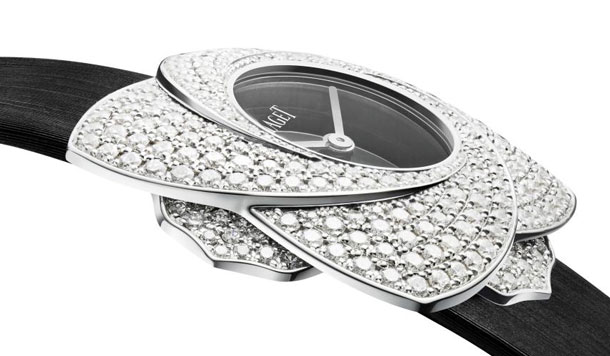 водонепроницаемость 30 м, корпус инкрустирован 269-ю белыми бриллиантами весом 2,5 ct.