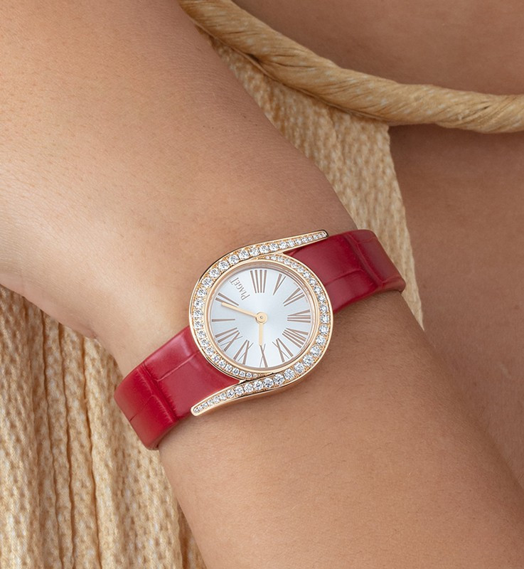 Часы Piaget Limelight Gala 26 mm представлены в корпусе из розового золота 18к размером 26 мм и водонепроницаемостью 30 м. Внутри корпуса установлен кварцевый механизм, Калибр Piaget 59P. На серебристом циферблате отображаются часы, минуты. Часы комплектуются ремешком из кожи аллигатора из розового золота 18к. Корпус инкрустирован белыми бриллиантами.